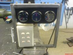 This is my control panel, the speed will be adjusted with the gas regulator pressure. the 3 gages is a temp gage for the oil, a amp meter and a oil pressure gage. The 6 switches will be used for MAIN, oil pump, cooler and starter, ignition and fuel pump.